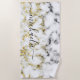 Black and white marble gold sparkle Custom name Beach Towel