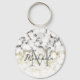 Monogram Personalize with your custom initial and name. Black and white marble gold sparkle flakes chic key chain for her.