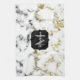 Black and white marble gold sparkle flake Monogram Tea Towel