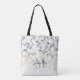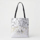 Personalize chic all over print tote bag t with your initial and name. Black and white marble gold sparkle flakes. Elegant black and white marble texture with accent of gold glitter sparkle flakes. *photo of sparkles not actual glitter!