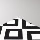 This stylish black and white geometric pattern is an original ornamental design. White meanders angle around black diamonds containing white diamonds. Black zigzags provide subtle separation between the winding paths.