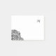 A simple yet stylish design featuring a corner border with a black and white medallion. An accenting  Monogram initial.