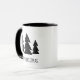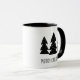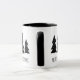 Bring a whimsical, modern touch to your holidays with this Scandinavian-inspired design. It features three black and white pine trees and the words "Merry Christmas" in a black hand-printed font. The design appears on both sides of the mug.