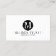 featuring white monogram in black circle element with business information in black professional font style on white background.