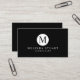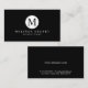 featuring black monogram in white circle element with business information in white professional font style on black background.