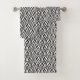 Black and white leaf pattern repeat pattern stripe style towel. Ideal for a modern black and white bathroom. You can also add an accent colour if required. © Pattern art and design by Sarah Trett. www.sarahtrett.com for www.mylittleeden.com