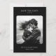 Let your guests know about your wedding date with these modern typography photo save-the-date invitations. The front features a photo, your names, the location, and the date, while the back showcases a simple monogram along with your names and the date. You can also add a QR code and your wedding website to the back. To customise the design, simply click the 'Edit/Personalise' button. These save-the-date cards are a perfect way to announce your special day to friends and family.