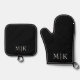 Black and White | Modern Monogram Oven Mitt & Pot Holder Set
