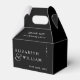 This black and white minimalist monogram wedding favour box can be personalised with your information in modern typography. Designed by Thisisnotme©