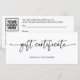 This modern, black and white gift certificate features elegant handwritten script typography, You can add your logo and a QR code to the back for a simple, stylish, and professional look.