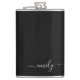 Black and White Modern Script Monogram Name Hip Flask