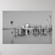 Black And White / Monochrome Sea Ocean Boat Birds Pier Poster Print to add to your home / office / business decor collection. A cool gift / present idea for all who love nature, ocean / sea, sand and beach, custom design items.