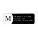A black and white design featuring name and address in white professional font style with black monogram on white side border on black background .