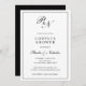 Classy couples bridal shower invitation featuring a simple design with your two initial monogram and your names in an elegant calligraphy inside of a thin border. The backside is solid black. This classic black and white design is perfect for a formal couples shower.