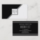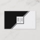 Black and white monogram and triangles modern geometric business card. The front includes two diagonal stripes one black and one white that separate the card in two triangles. A white square is on the centre with your monogram.