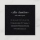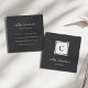Chic and professional square business card design printed on unique black paper features a modern square element holding your single initial monogram, with your name and title or business name beneath in contemporary lowercase serif lettering. Personalise the reverse side with your contact details in matching white. A modern choice for any occupation; sample shown for realtors or real estate agents.