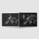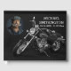A stunning motorcycle photograph in black and white creates a beautiful backdrop for your personal photo.