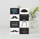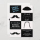 Invitation for bachelor party features 4 styles of moustaches in black and white.