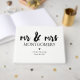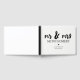 Wedding guestbook in black and white with mr & mrs written in a bold calligraphy font above your shared last name and wedding date.