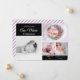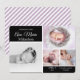 Casual and elegant, this violet and lavender background and stylish typography sets the stage for an lovely birth announcement for your new baby girl. With room for a multi photo collage of your child, this card is a lovely way to introduce baby to family and friends. Coordinating purple striped pattern on the back.