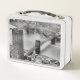 This is a standard metal lunchbox that appears to work just fine. We designed this box ourselves with an uploaded photo and custom text on the front and back. It looks absolutely beautiful except the front of the lunchbox is not centered like it shows in the photo. The print borders don't align with the inset flat part of the box where the preview photo online showed it perfectly centered in there. The back looks nice and centered though.