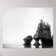 Black and White Ocean Shore Tree Landscape Poster