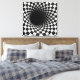 A tunnel-like optical illusion is created using a black and white chequered pattern, giving a dizzying sense of depth