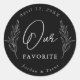 Black and White Our Favourite Wedding Favour Stick Classic Round Sticker