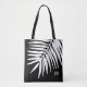 Black tote bag with a large white palm leaf print front and back, and a monogram text area to add your own initials