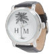 This modern coastal inspired watch features a black palm palmetto tree with a monogram that you can personalise with your choice of initials.