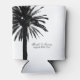 Modern Black and white palm tree beach wedding can coolers for beer and other drinks.
