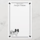 Destei's original cartoon illustration of a black and white coat colour Papillon breed dog. The dog is placed in one corner and the design is framed by borders that have a dog paw print in each corner. On the top there are two personalizable text areas.