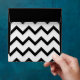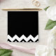 This item features a stylish design in black and white that is partially a monochrome zig zag chevron pattern, and part plain black.