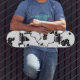 Black and White Pattern Birds on Cherry Blossoms Skateboard