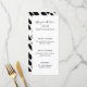 Black and White Modern Script Wedding Menu Card with Patterned Back of Card.