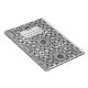 Black and White unique monochrome, intricate pattern with customisable name on front label on notebook.
