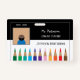 A black and white horizontal teacher photo ID badge with colour pencils at the bottom . Personalise it with your own info using the template field . Check out our collection below for other colours (as it comes in red , blue , green and purple as well ). Ideal for any school staff member.