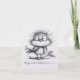 The simplest black and white Christmas note card featuring a penguin standing on holly branch, and text