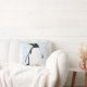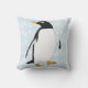 This seasonal throw pillow features a simple design of a black and white Gentoo penguin against snow flakes.