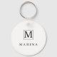 A stylish personalised Keychain with black and white colours featuring your initial and name.