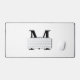 feature personalised black monogram in classic serif font style with box of name in the middle of monogram on white background.