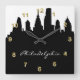 Black and White Wall Clock. ⭐This Product is 100% Customisable. Graphics and / or text can be added, deleted, moved, resized, changed around, rotated, etc... 99% of my designs in my store are done in layers. This makes it easy for you to resize and move the graphics and text around so that it will fit each product perfectly. ⭐ (Please be sure to resize or move graphics if needed before ordering) You can also "TRANSFER DESIGN" on other Zazzle products and adjust the design to fit most of Zazzle items. (button is down on the right side of the page) Some of the text graphics have ready to fill in the box(es) or you can Click on the "CUSTOMIZE" button to add, move, delete, resize, background colour or change any of the font or graphics. The design is made with high resolution vector and/or digital graphics for a professional print. ⭐NOTE: (THIS IS A PRINT. All zazzle product designs are "prints" unless otherwise stated under "About This Product" area) The design will be printed EXACTLY like you see it on the screen and on the product...so please make sure when you do your changes on the resizing of any of the graphics or text that it fits in the areas correctly and that your spelling and wording is how you like it to be in size, colour and font. If you have any questions about the "DESIGN" or need help please contact me at siggyscott@comcast.net or visit my store link: http://www.zazzle.com/designsbydonnasiggy?rf=238713599140281212 (Copy and Paste) I'll be happy to help. ⭐ All other questions (shipping, refund, the printing, the product, etc...) please contact Zazzle or the Maker ⭐DIRECTLY⭐. Thank you for the support and stopping by my store - DesignsbyDonnaSiggy. City Skyline Originally designed by Vector Open Stock www.vectoropenstock.com