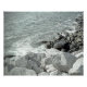 This poster features a beautiful monochromatic photo of a rocky Atlantic Ocean shore.