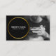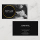 Make a memorable impression with this personalised black and white photo adorned with black and gold circle frame business card, designed for barber shop, hairstylists, or beauticians. Showcase your unique style and expertise with a striking black and white photo, elegantly displayed on this modern card.