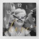 Black and White Photo Gold Script Love Square Wall Clock