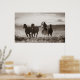 Black and White photo of a Cowboy Lassoing Horses Poster