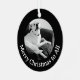 This cute ornament features a black and white photo of Olive, an expressive Labrador mix with customizable text on front and back.