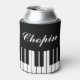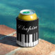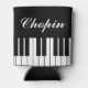 Black and white grand piano keys custom pianist name Can Cooler. Personalised coolies with musical design. Make your own beverage holder for piano player, musician, friends, family, kids, dad, husband, son, brother, uncle, grandpa, boss, co worker, teacher, coach, instructor, student, guests etc. Also available as bottle holders. Fun typography template. Custom background colour. Personalised accessories and party supplies. Double sided print.