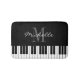 Black and white piano keys monogrammed bath mat. Cute home decor for musician, piano teacher, piano player, pianist, keyboard instructor, instrument builder etc. Elegant monogram with stylish script typography template for name and initial letter. Classy bathroom decorations.