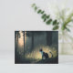 Send your friends and loved ones a black and white cat enjoying the solitude of a forest at dusk while surrounded by fireflies.